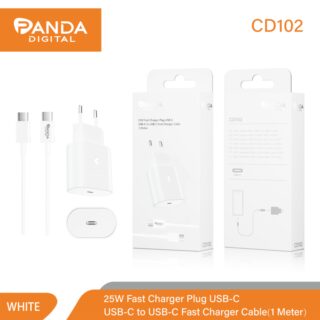 PANDA DIGITAL CG109 CARGADOR CARGA RAPIDA CON CABLE PARA TIPO C A TIPO C 25W BLANCO