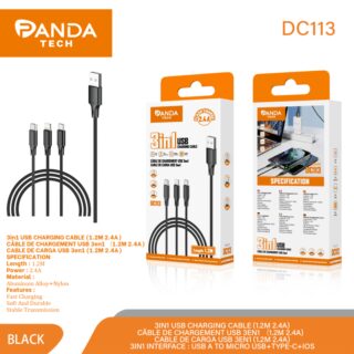 Panda Tech DC113 Cable 3 En 1 Micro+iOS+Tipo C 2.4A 1.2M Negro