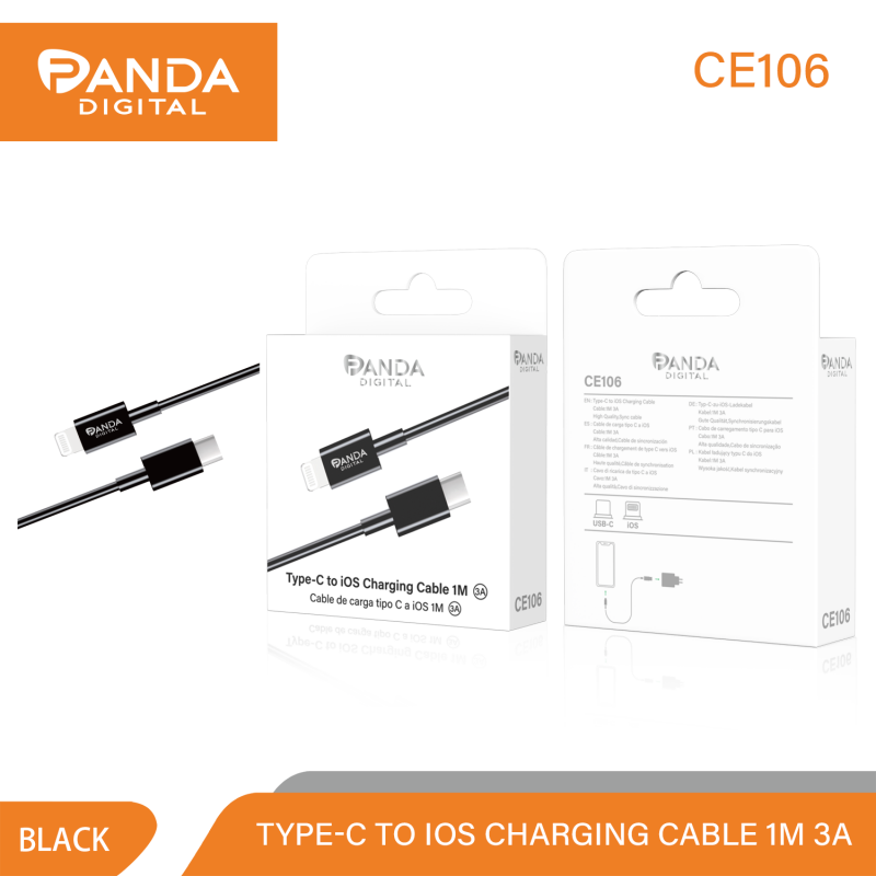 PANDA DIGITAL CE106 Cable de Datos para tipo C a IOS Lightning 1M 20W Negra