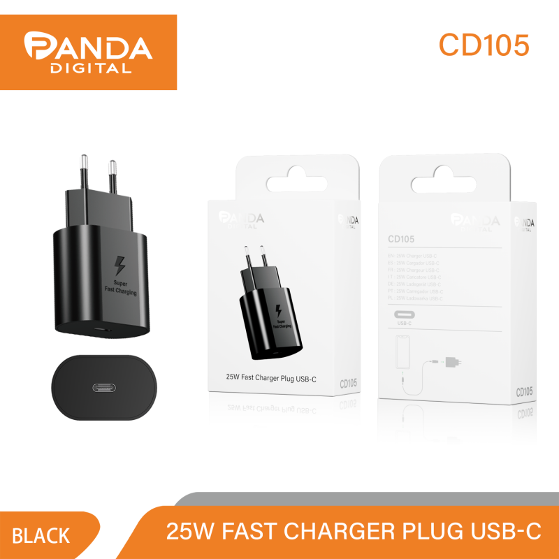 PANDA DIGITAL CG104 CARGADOR CARGA RAPIDA PLUG TIPO C 25W NEGRA