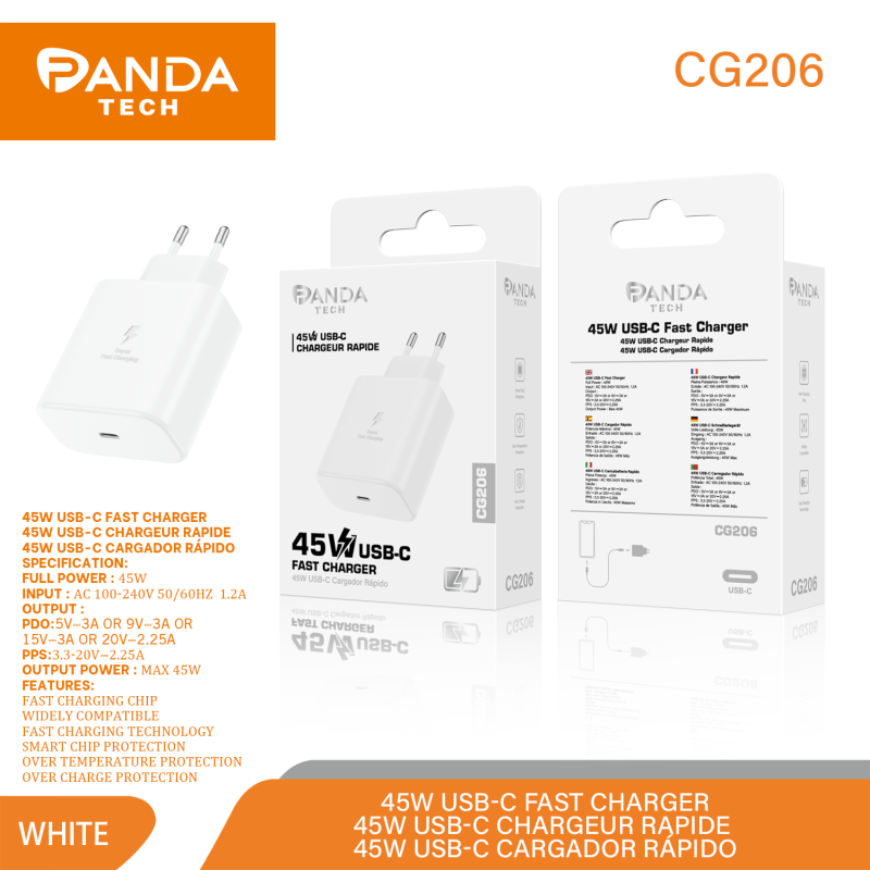Panda Tech CG206 45W USB-C Cargador Rapido Blanca