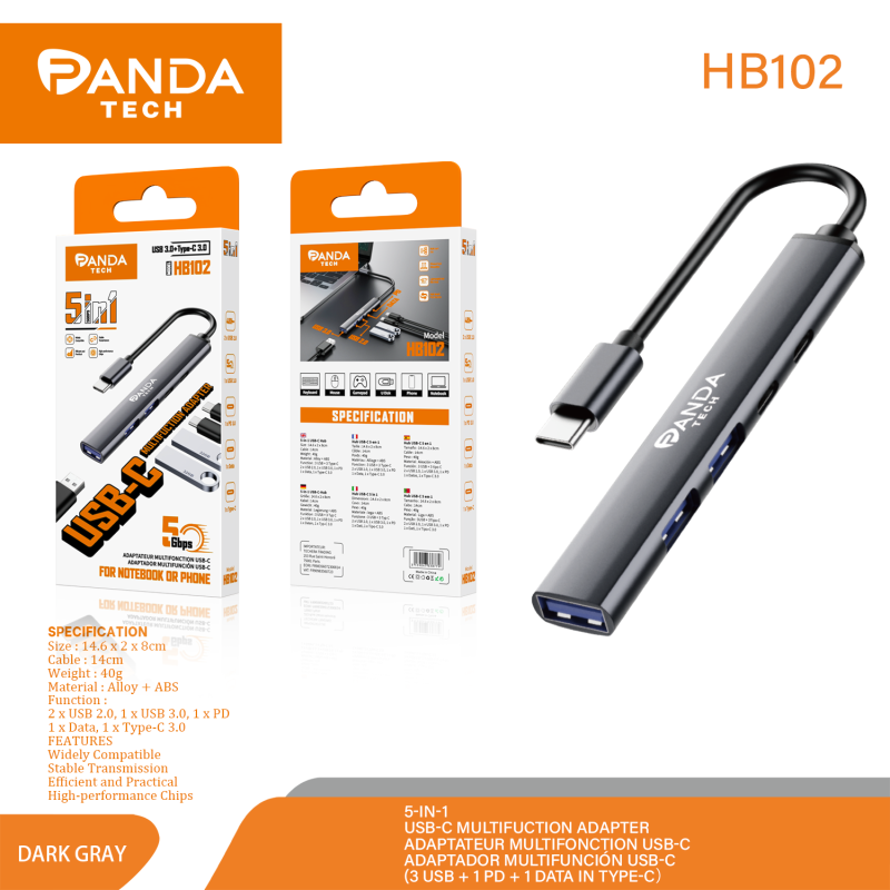 Panda Tech HB102 ADAPTADOR MULTIFUNCION HUB 5 IN 1